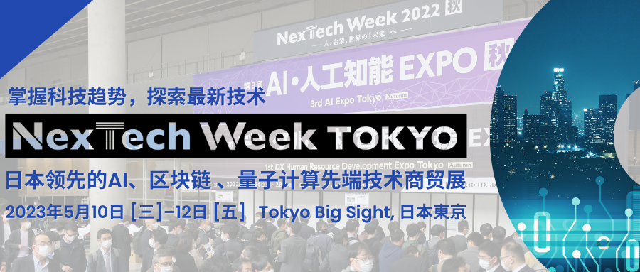 2023/04/27加入您的商務(wù)行程—邀請(qǐng)參訪(fǎng)日本先端技術(shù)盛宴?。?月10-12日@東京)文末掃碼申請(qǐng)免費(fèi)觀(guān)眾入場(chǎng)券▋國(guó)內(nèi)外300家展商云集 —掌握科技新趨勢(shì)NexTech Week Tokyo是日本領(lǐng)先的AI人工智能、區(qū)塊鏈、量子計(jì)算先端技術(shù)商貿(mào)展。今春的展會(huì)預(yù)計(jì)匯集300家展商共襄盛舉。其中包含日本知名老牌企業(yè)....